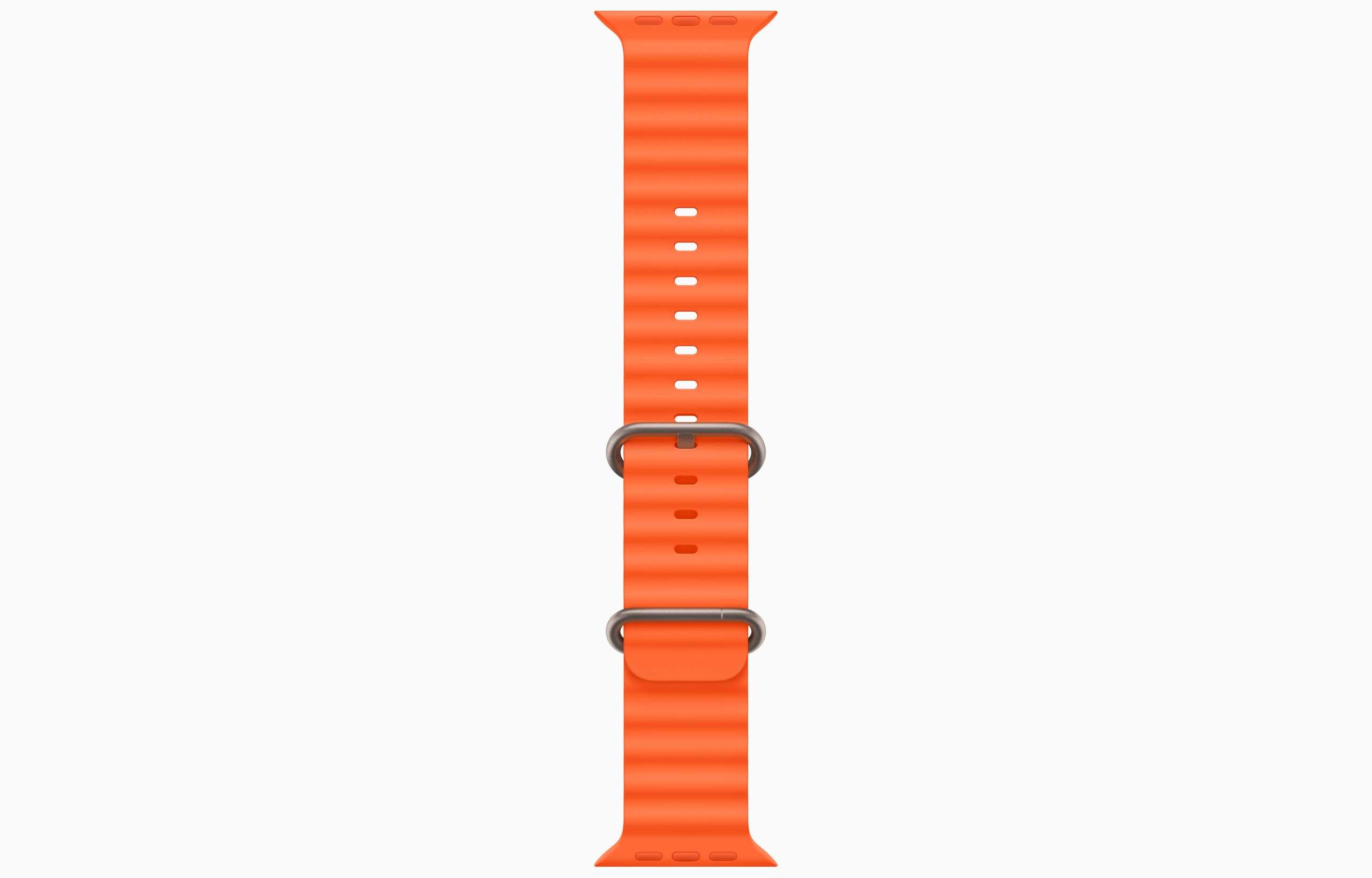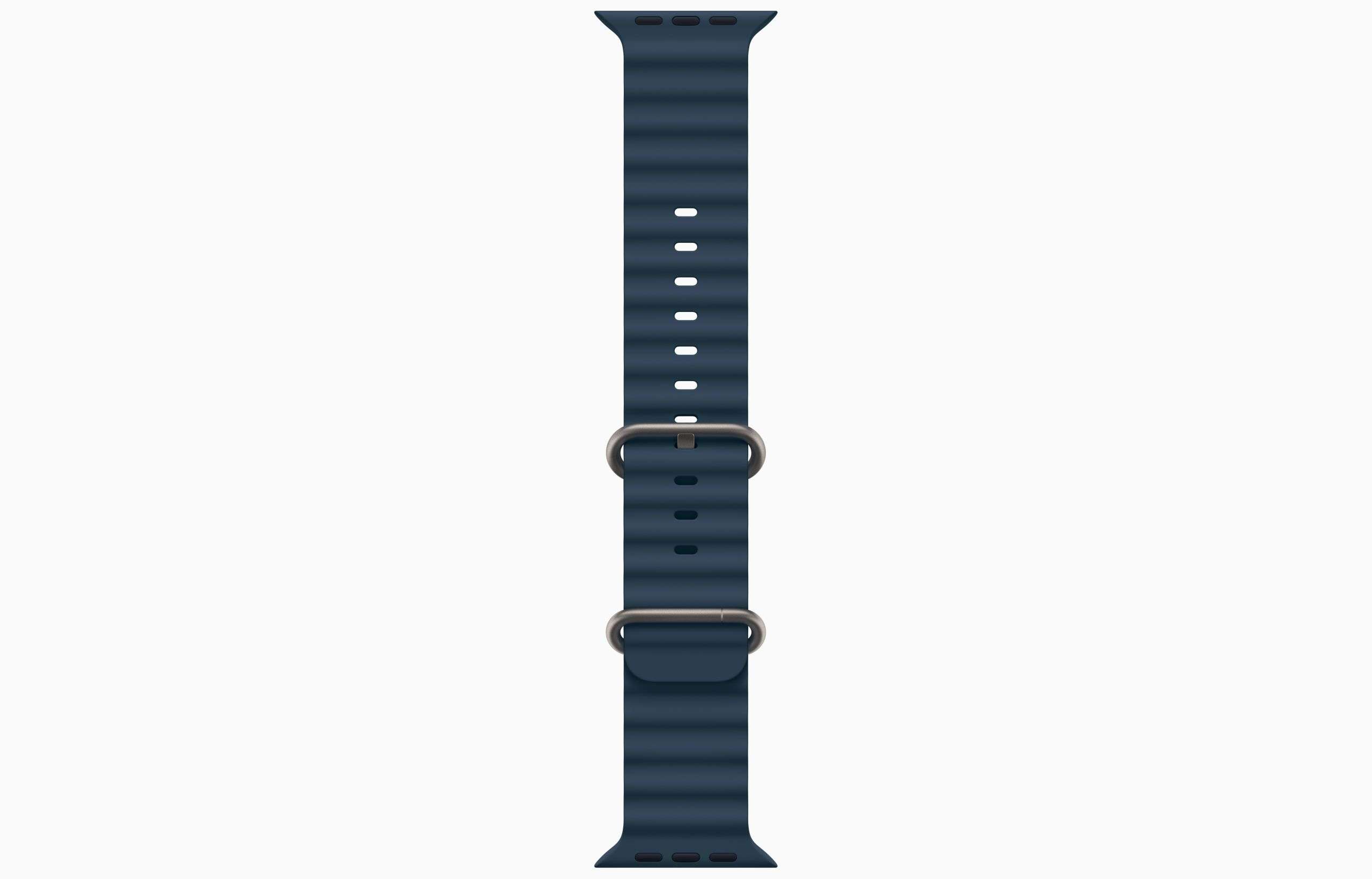 Ocean Band отлит из высокоэффективного эластомера с трубчатой геометрией, что позволяет ему растягиваться для идеальной посадки даже над гидрокостюмом. Титановая пряжка и регулируемая петля закрепляют ремешок во время скоростных водных видов спорта.
